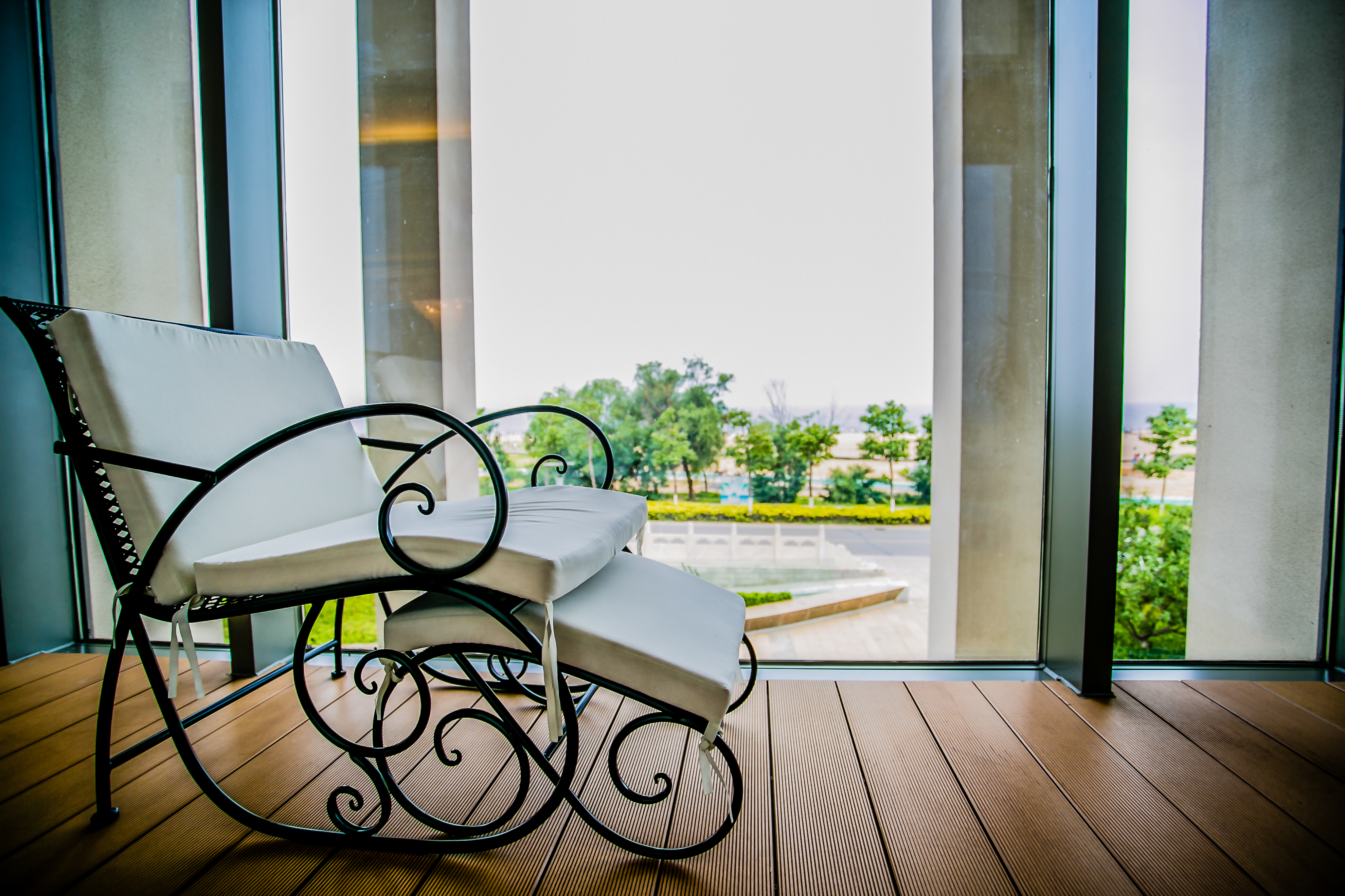 早上去陽臺上站一會,呼吸新鮮的空氣,為當天的忙碌生活帶來好心情,臥室帶陽臺的陽臺空間足夠大的話還以設計成游泳池,使用起來也方便,如果是在客廳旁游泳不怕被人看到的話才可以試一試。